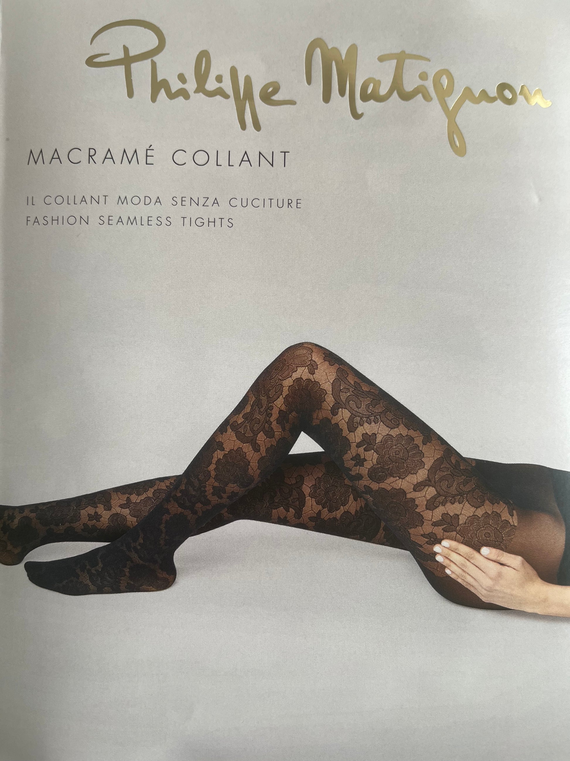 Philippe Matignon classic lace collant, with net backing and a beautiful floral. Available in black in size M/L.