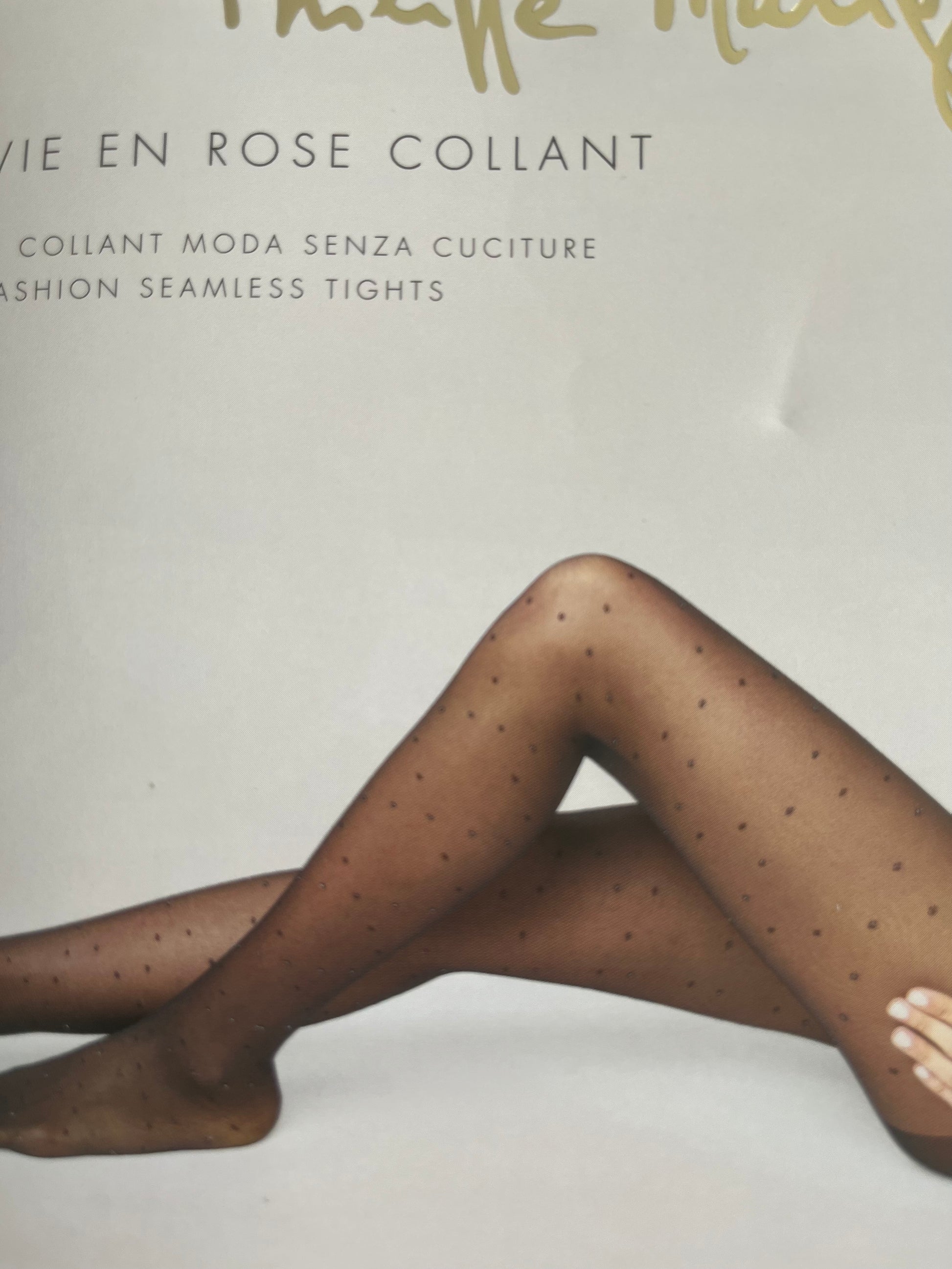 Philippe Matignon sheer hosiery with dots, the dots are silver and black intermittent . Available in black in size M/L.